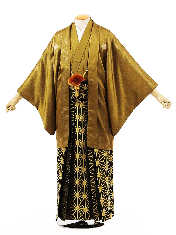 男性袴レンタル0258 からしゴールド紋付×黒金