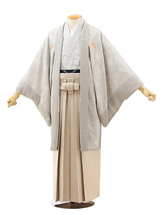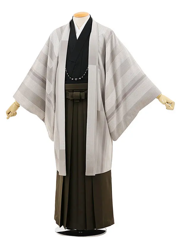 男性袴レンタル0244 シルバーグレー紋付×ベージュストライプ