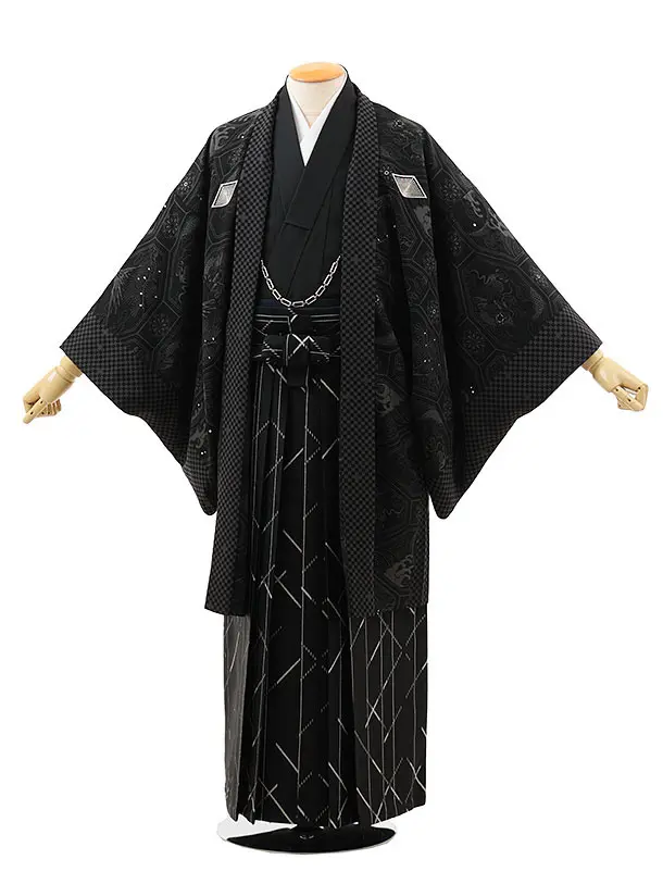 男性袴レンタル0293 シルバー亀甲紋服×黒金龍