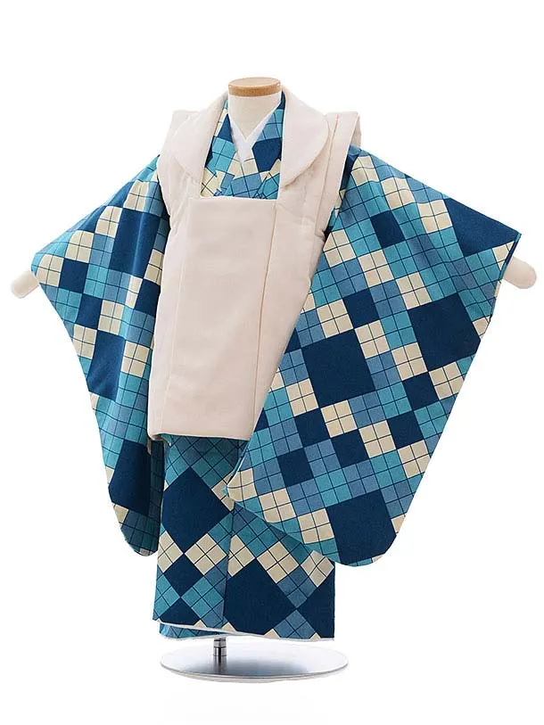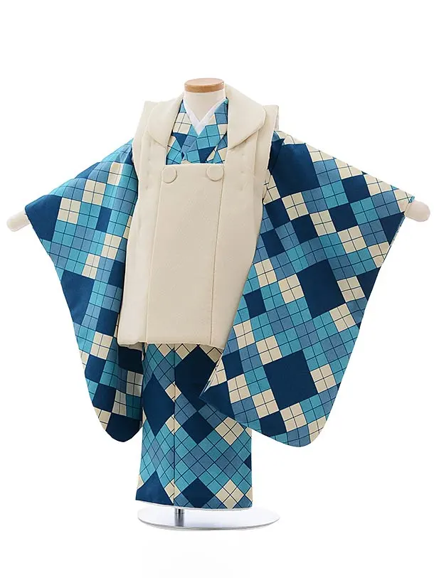 七五三レンタル(3歳男児被布)2388 ベージュ×ブルーアーガイル