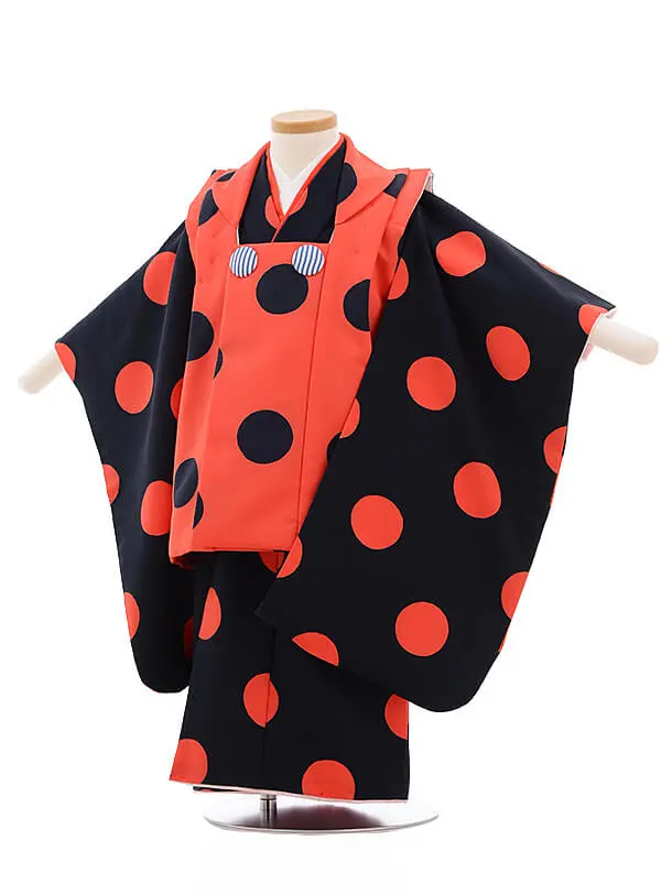 七五三レンタル(3歳男児被布)2387 オレンジ×紺 ドット