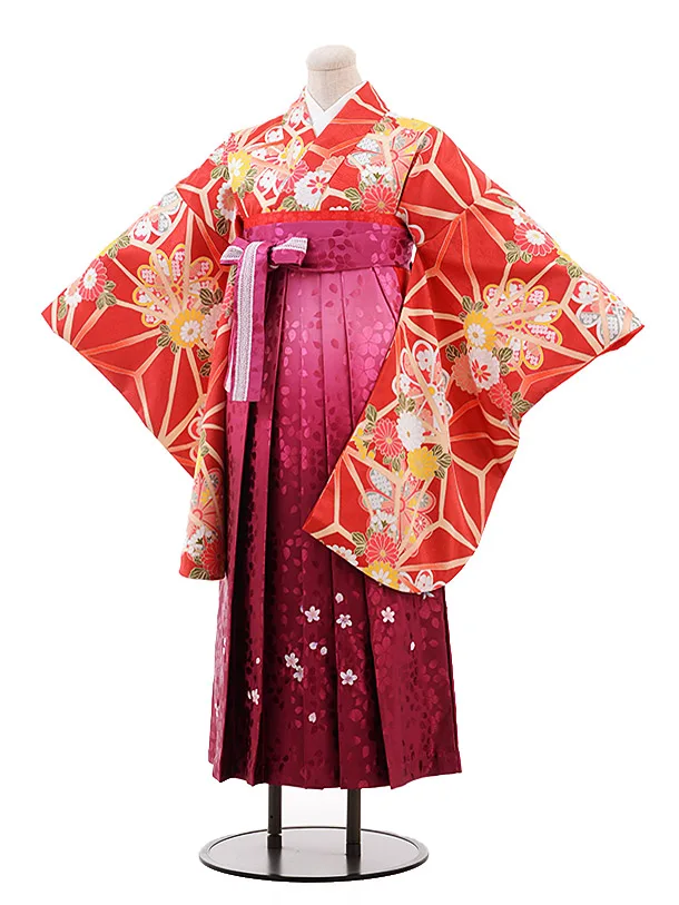 卒業式袴レンタル h109 赤地 菊×ピンクぼかし