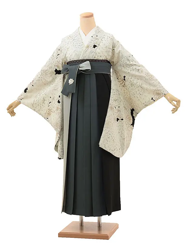 卒業袴 1834 紅一点 白菊づくし(ホワイトココア)×野バラ刺繍(ブラウン)
