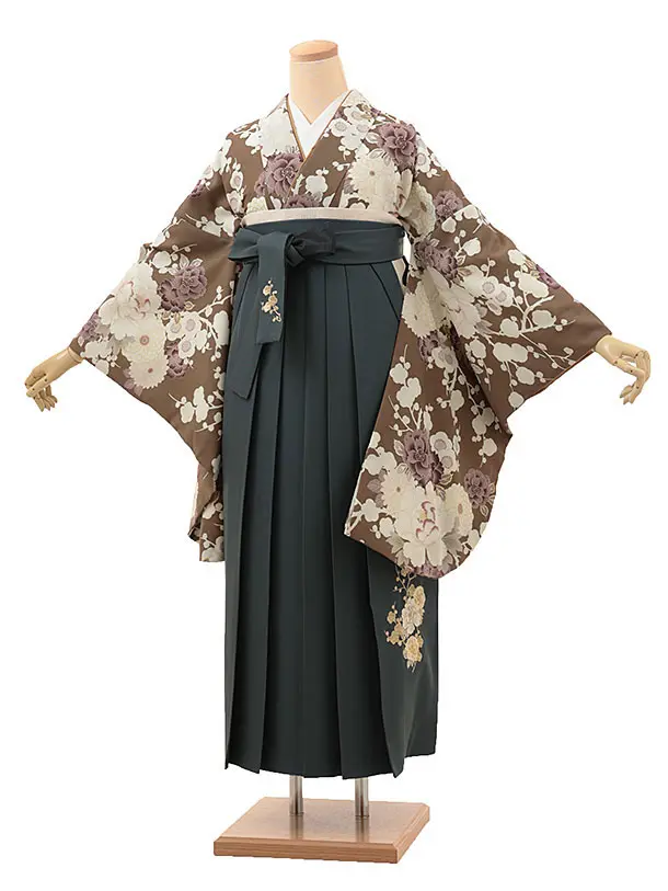 卒業式袴レンタル1860 Kansai ブラウン梅花xブルーグレー