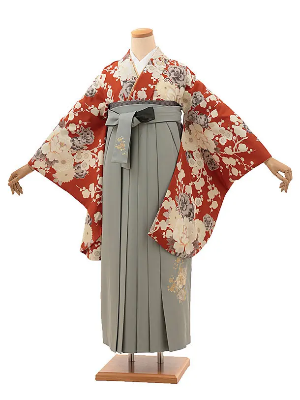 卒業式袴レンタル1863 Kansai 赤梅花xグレー