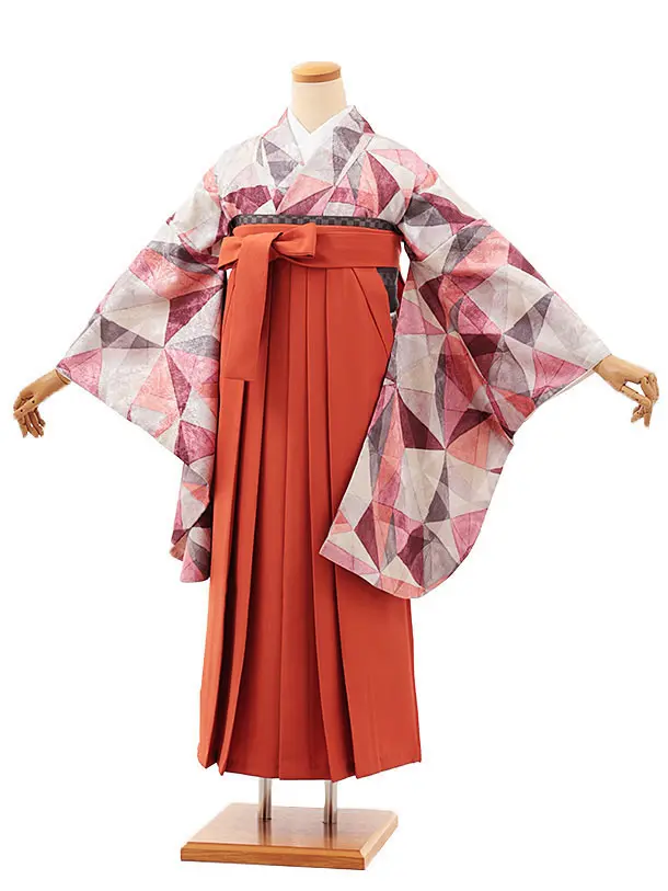 卒業式袴レンタルV393 ピンク幾何学×テラコッタ