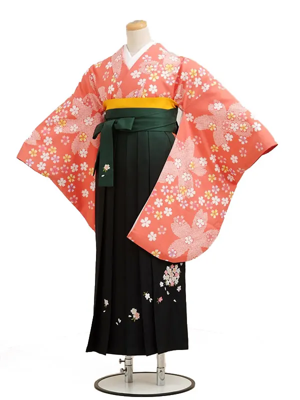 卒業式袴レンタル h001小紋レンタルオレンジ桜