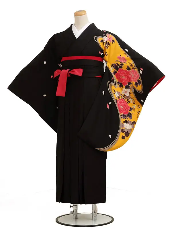 卒業式袴レンタル h008黒地に黄流水花