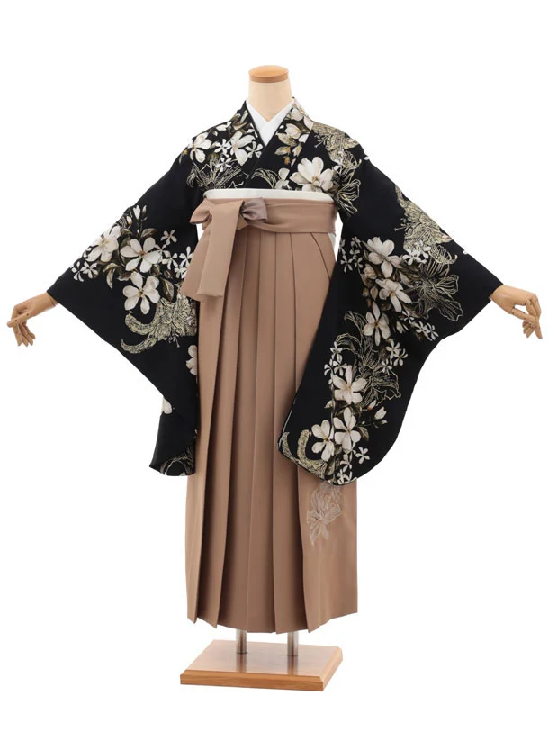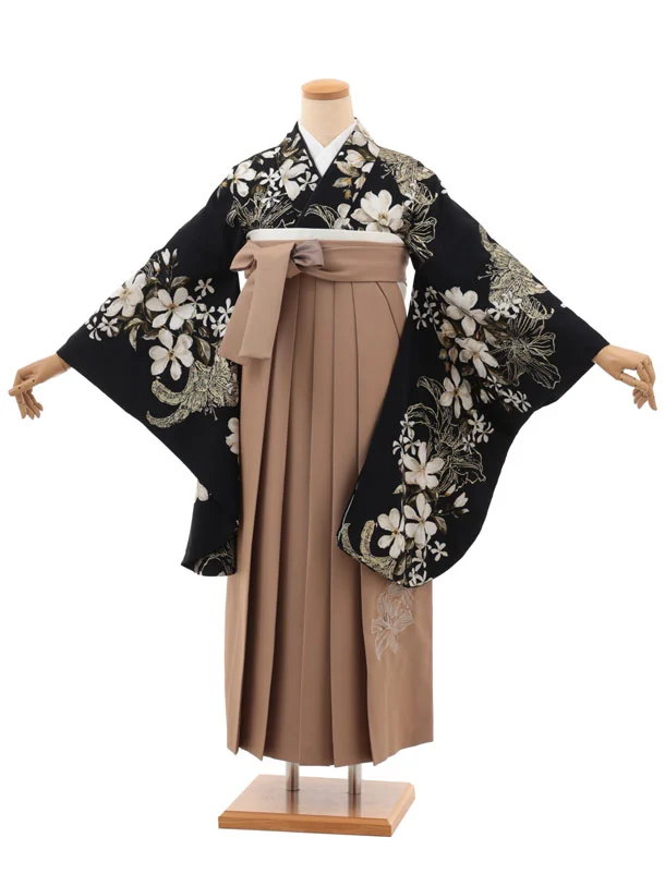 卒業袴T232 SUGARKEI 黒地花×モカブラウン