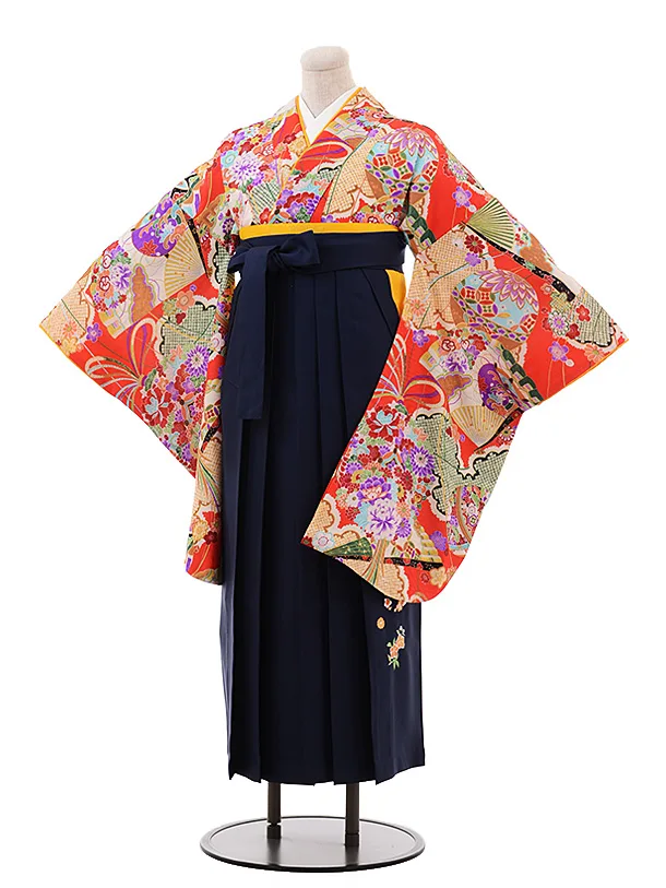 卒業式袴レンタル h230 赤地 古典×紺袴