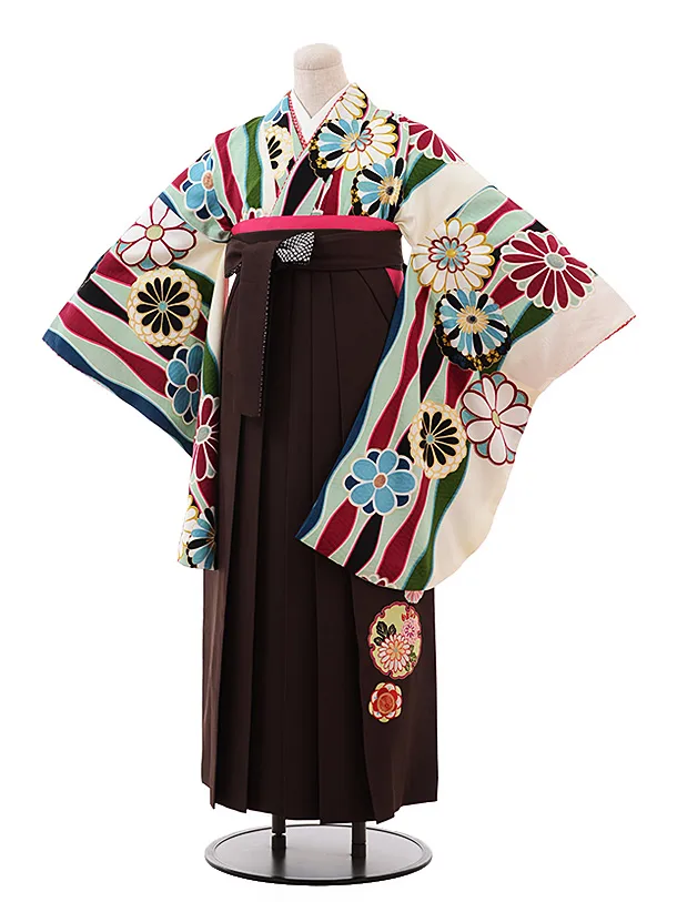 卒業式袴レンタル h246 九重 クリーム地 菊×茶色袴