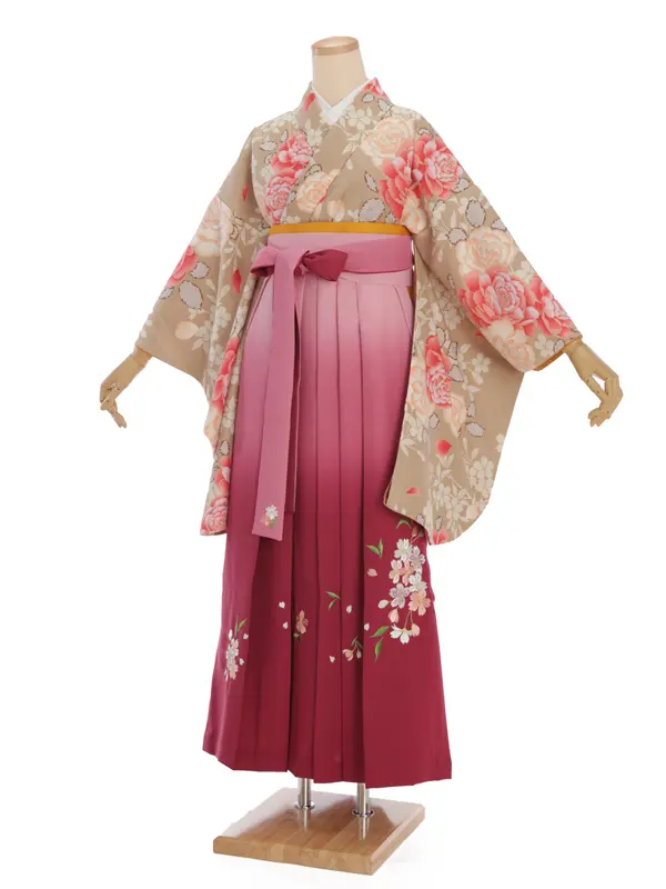 卒業袴レンタルh257 ベージュ ぼたん x ピンクぼかし袴