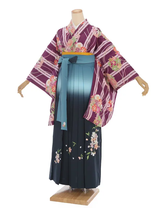 卒業袴レンタルh258 パープル 古典柄 x ブルーぼかし袴