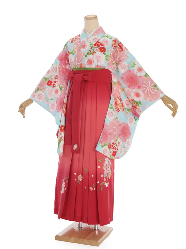 卒業袴レンタルh264 水色 ピンク 花 x ぼかし袴