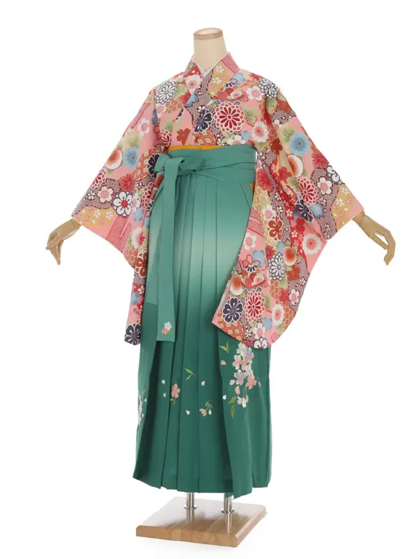 卒業式袴レンタル h207 グリーン 雪輪×エンジ袴