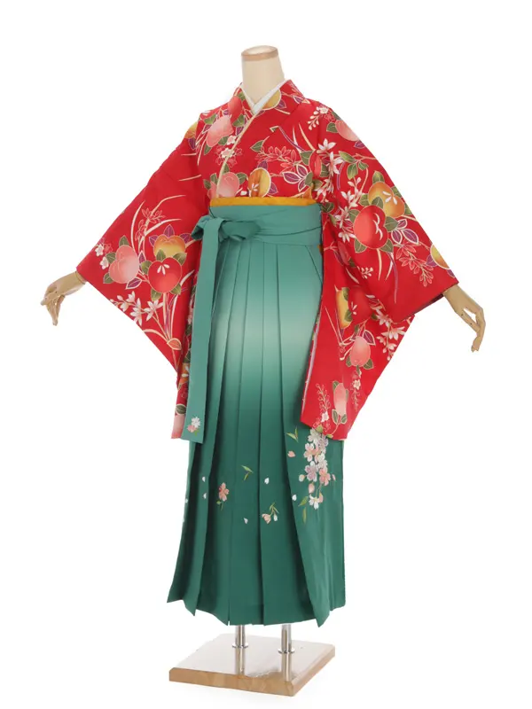 卒業袴レンタルh275 赤地 橘 x グリーンぼかし袴