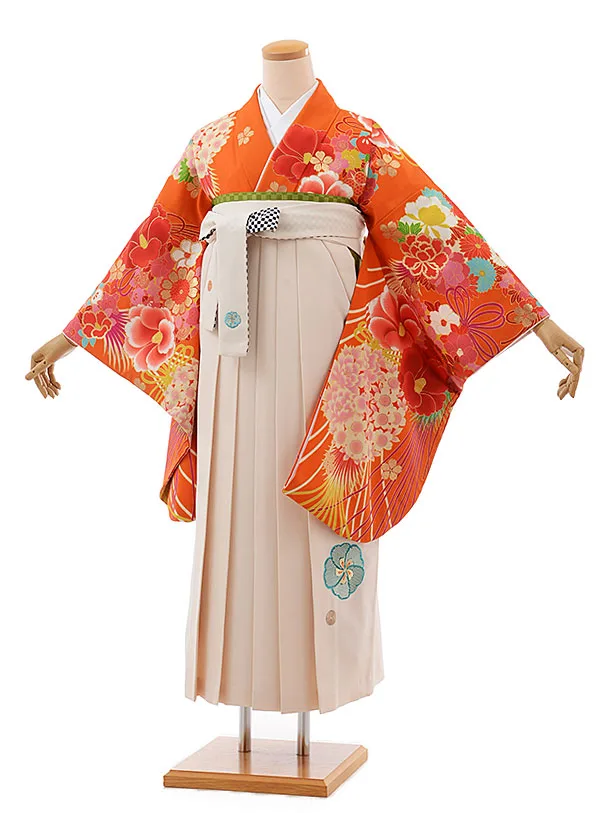 卒業式袴レンタルh410オレンジ花づくし×クリーム袴