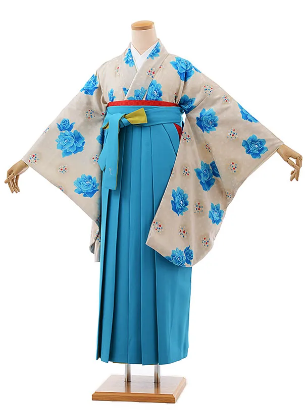 卒業式袴レンタルh568モダンアンテナグレージュバラ×ブルー袴