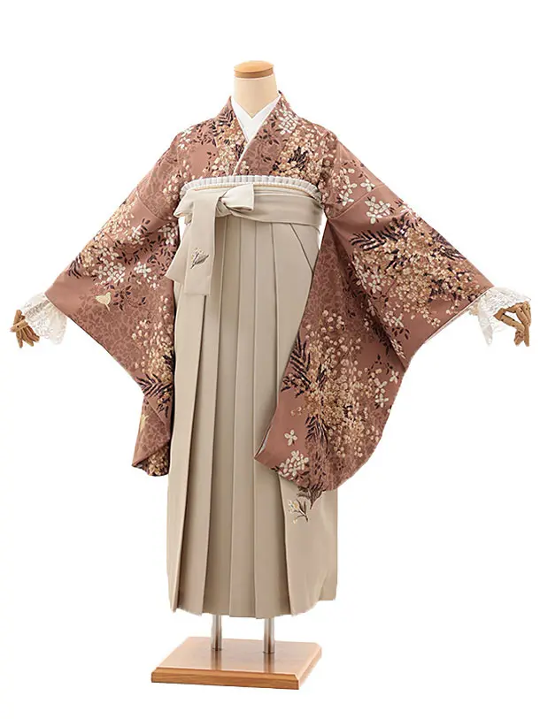 卒業袴T192 Kansai グリーンベージュ花×カーキグレー