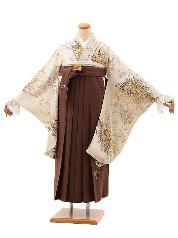 卒業袴T097 そしてゆめ アイボリー乱菊×モカベージュ