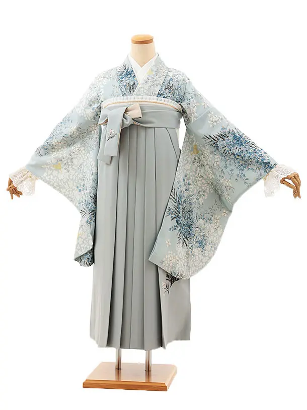 卒業袴T211 SUGARKEI ブルーグレー花×ネイビー