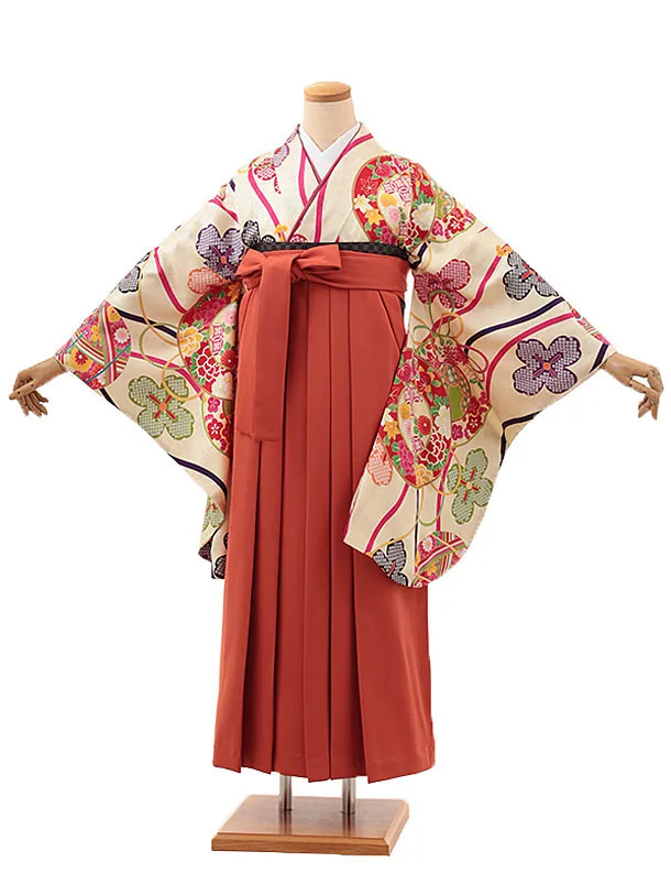 卒業式袴レンタルV185 赤地 花づくし×ベージュ