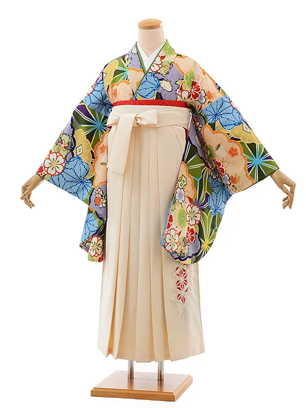 卒業式袴レンタル1944 グリーン花×アイボリー