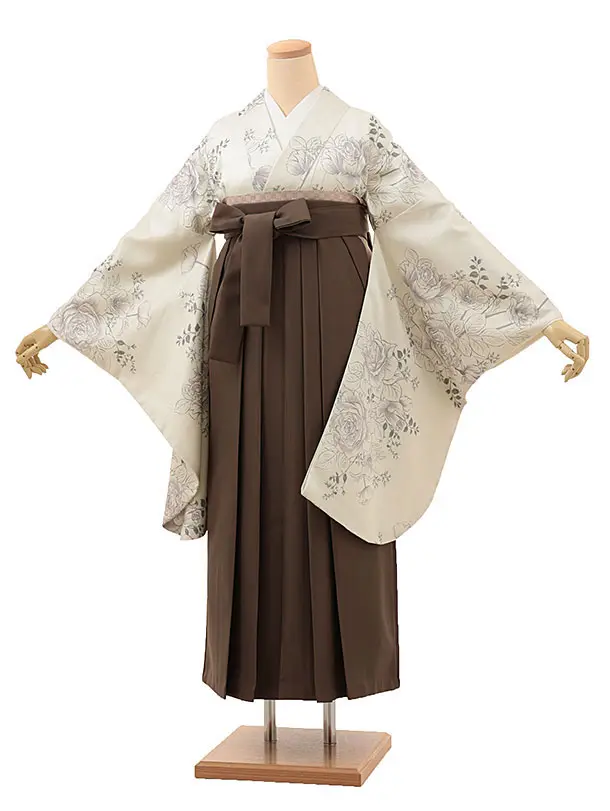 卒業式袴レンタル1956 オフホワイトバラ×ブラウン