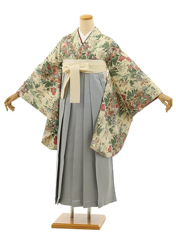 卒業袴レンタルh1082 ラフィネモカベージュゴブラン柄×グレー袴