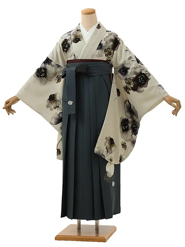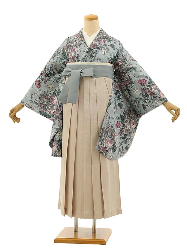 卒業式袴レンタル1177 JAPANSTYLEベージュアネモネxブルーグレー