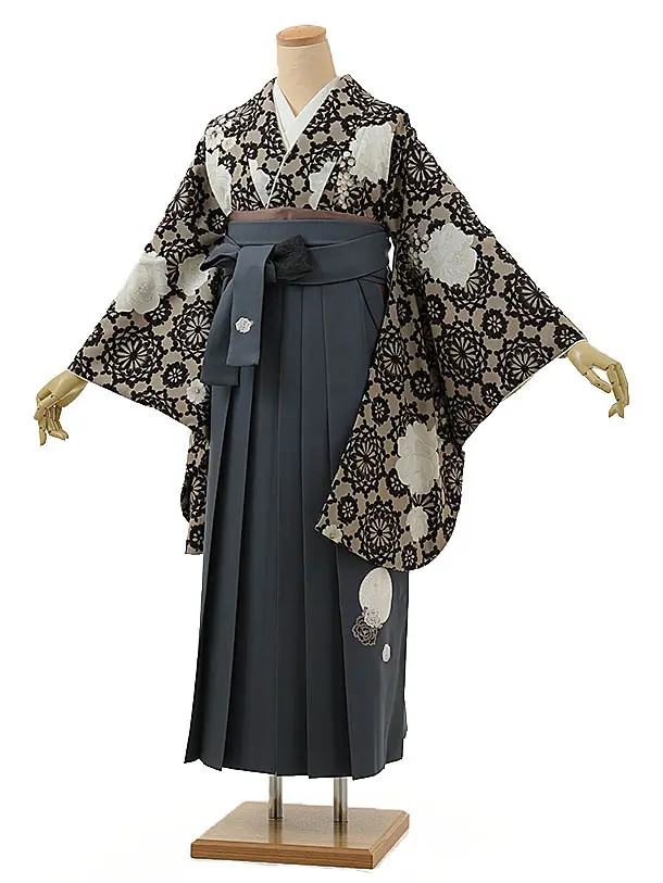 卒業袴T150 紅一点 チャコールグレー乱菊×ブルーグレー