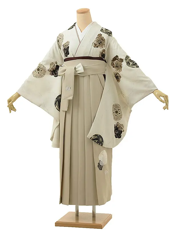 卒業式袴レンタル1186 JAPANSTYLEオフホワイト鞠に薔薇xアイボリー
