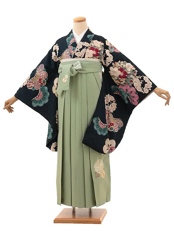 卒業袴T157 紅一点 ペールグリーン菊牡丹×モスグリーン