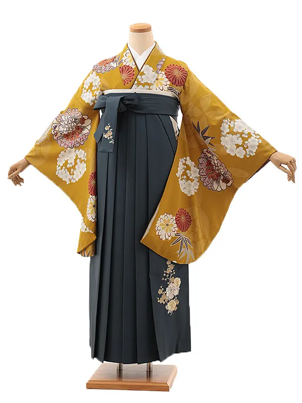 卒業式袴レンタルV975 Kansai からし梅菊×グリーン
