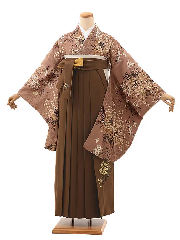 卒業式袴レンタルV978 Kansai ピンクブラウンミモザ×ブラウン