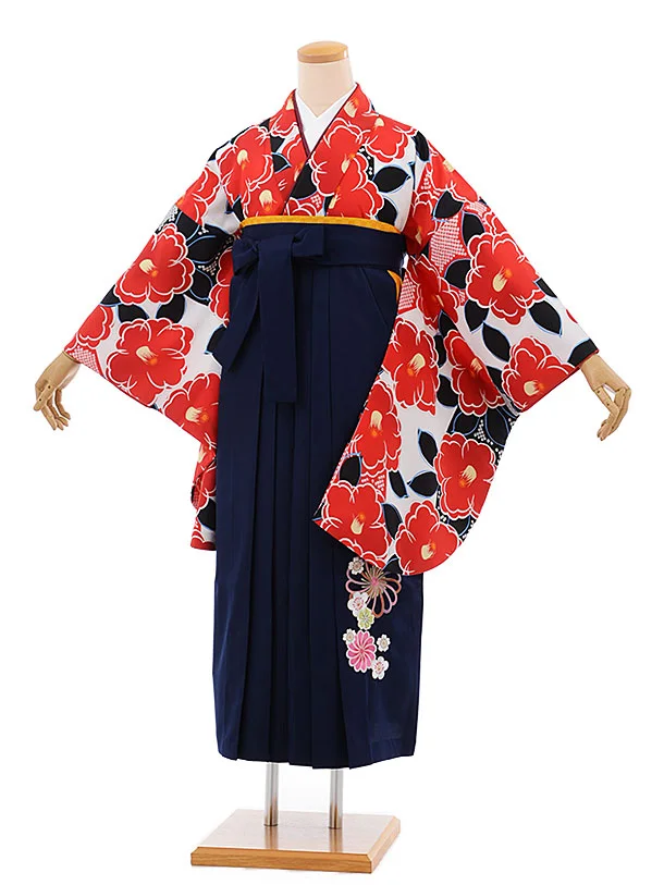 卒業袴レンタルh684 白地 椿 x 紺袴