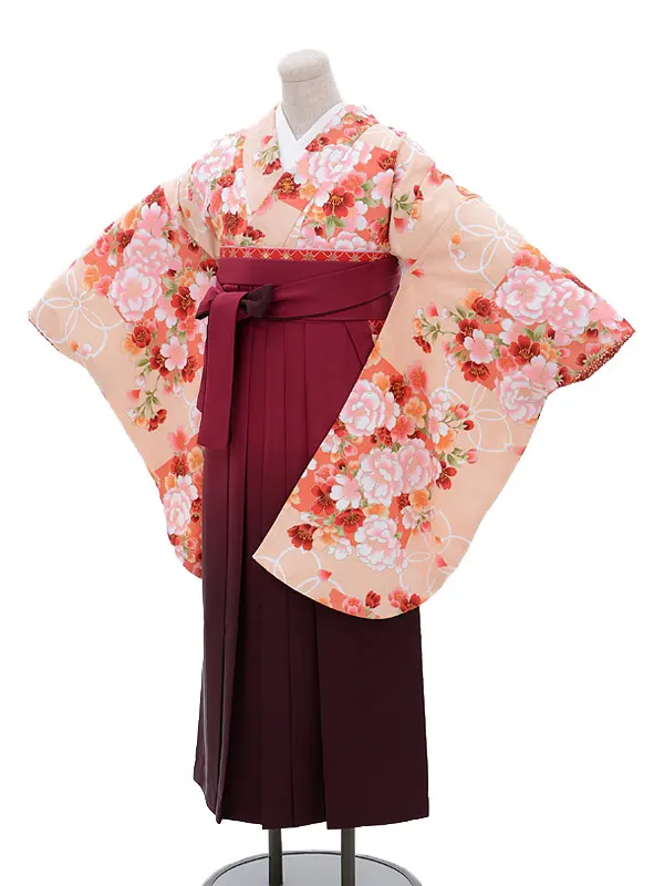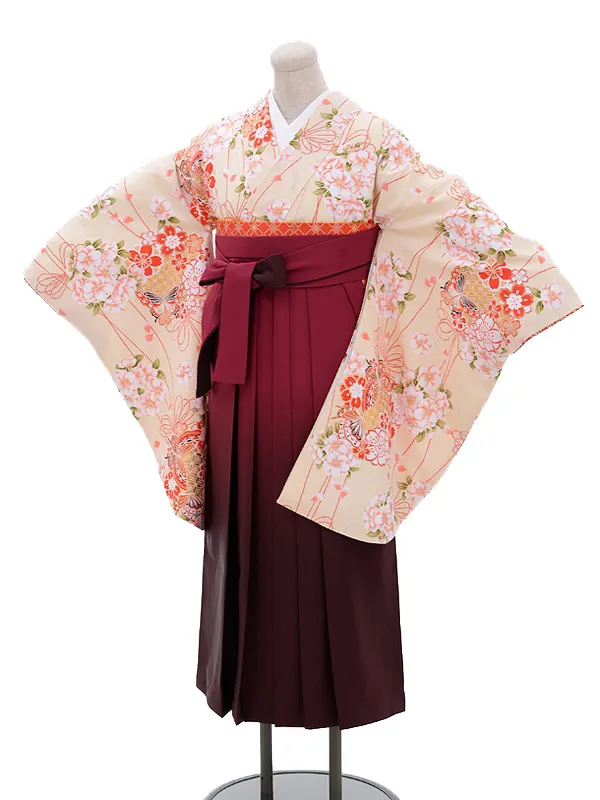 卒業式袴レンタル h111 クリーム色 ねじり梅×赤ぼかし