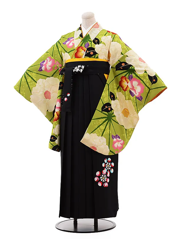 卒業式袴レンタル h080 紅一点 グリーン×黒