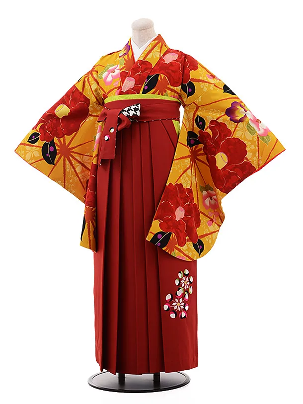 卒業式袴レンタル h081 紅一点 からし色×エンジ色