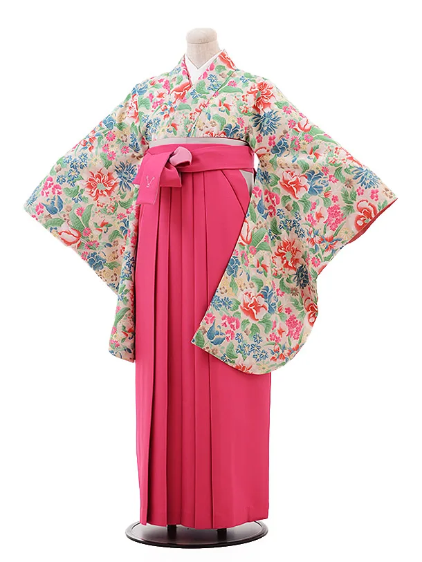 卒業袴レンタル h071 JAPANSTYLE クリーム色×グリーン
