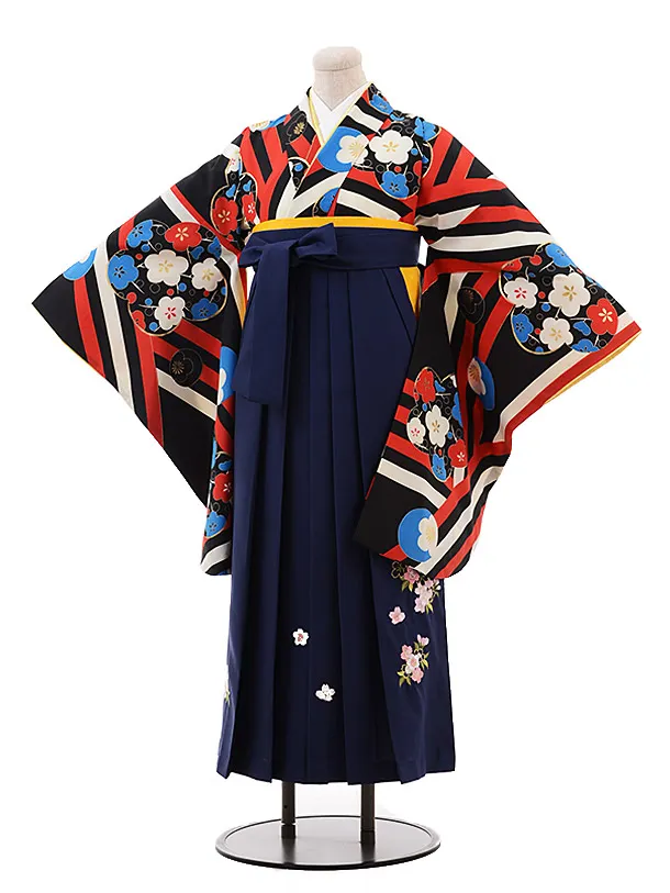 卒業式袴レンタルh113紺地 梅×ブラウン