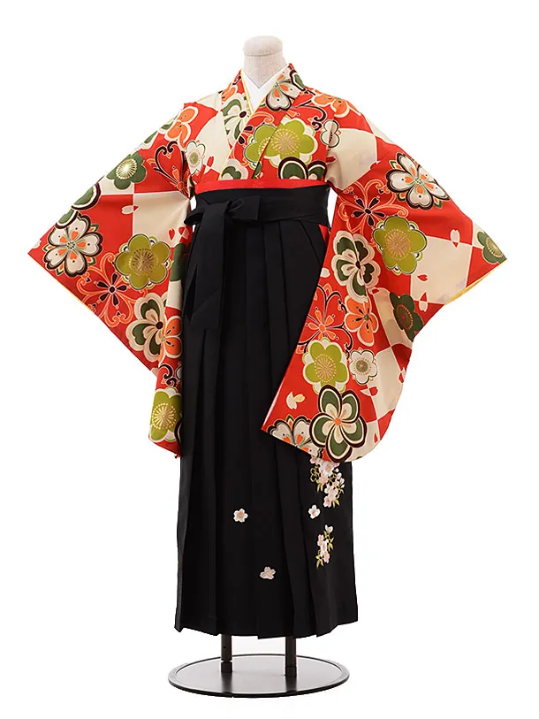 卒業式袴レンタル h068 JAPAN STYLE赤×グリーン