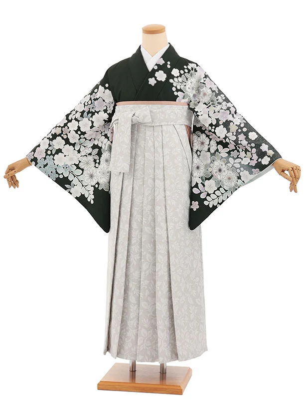 先生,教員向け袴レンタルT254 深緑辻が花調×薄グレー花