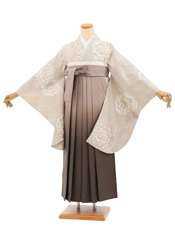 先生,教員向け袴レンタルT337淡グレー地花×モカベージュ