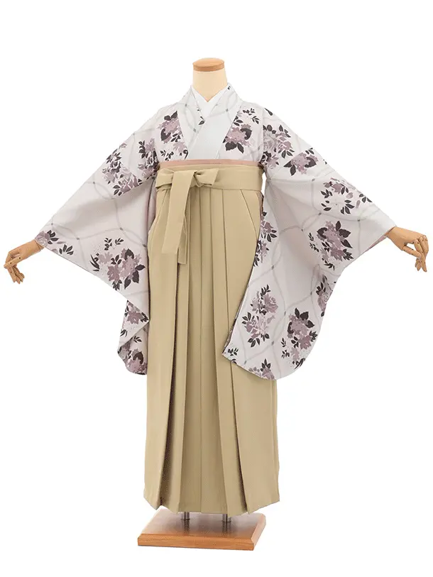 先生,教員向け袴レンタルT240 クリーム花×薄グレー花