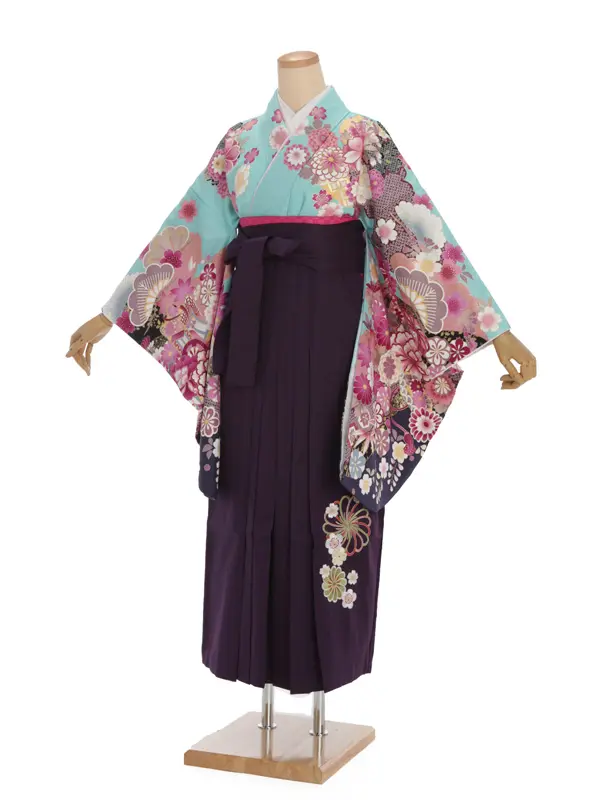 卒業袴レンタルh332 水色 古典柄 x 紫袴