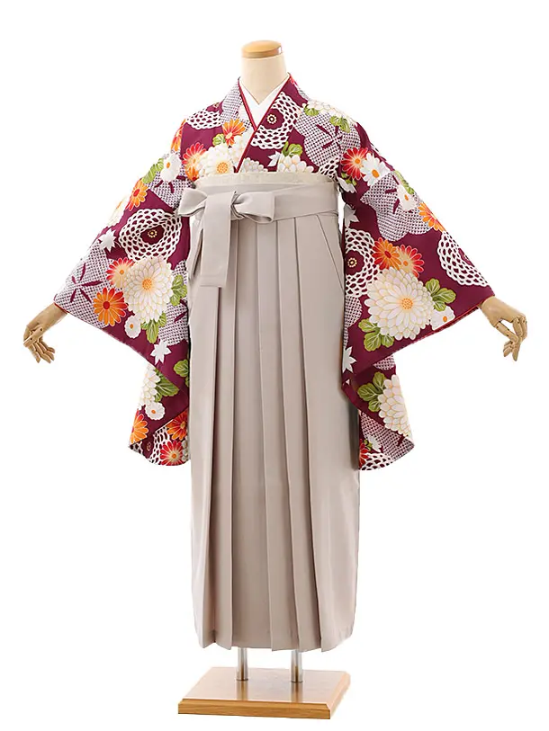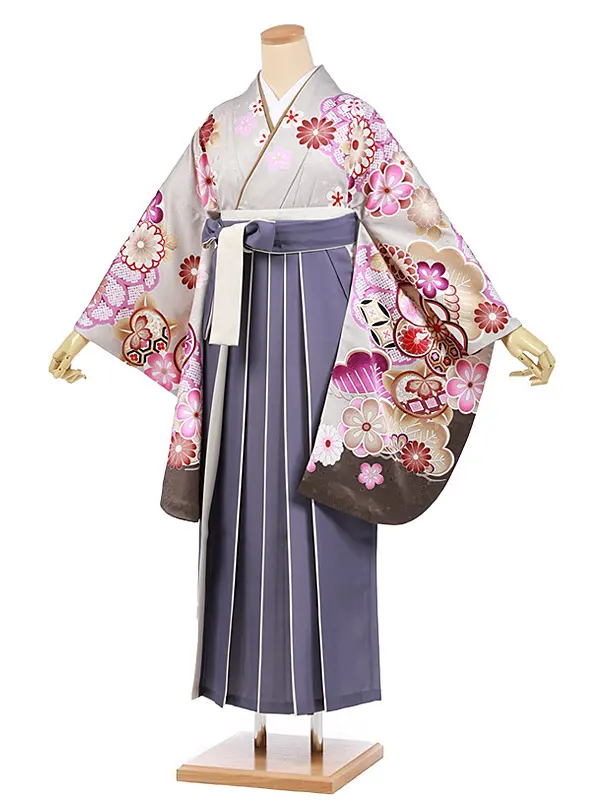 卒業袴レンタルh977 グレー地古典花×パープル袴