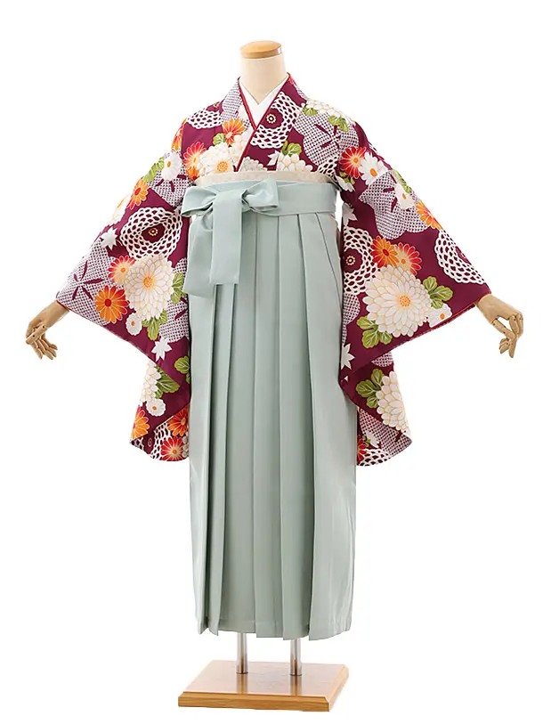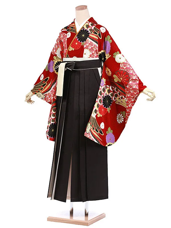 卒業袴レンタルh983 濃赤地羽根菊×黒袴