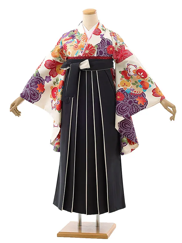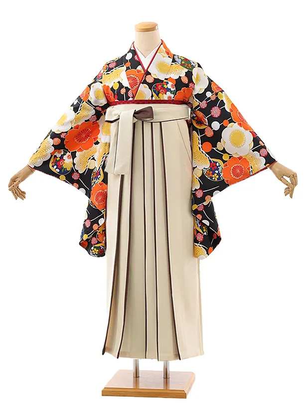 卒業袴レンタルh947 黒地梅×アイボリー袴