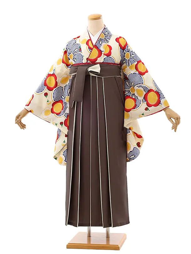 卒業袴レンタルh955 クリーム地 梅×茶色袴